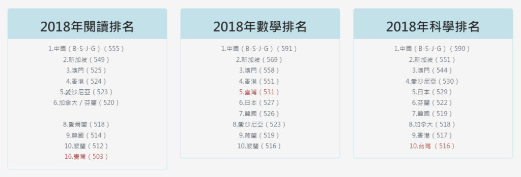 以色列在2018年的OECD評鑑學童學習能力的PISA(Programme for International Student Assessment, 跨國學生能力評鑑計畫)中顯示:以色列數學排42名(台灣第5名)、 以色列科學排43名(台灣第10名)、 以色列閱讀排38名(台灣第16名)。