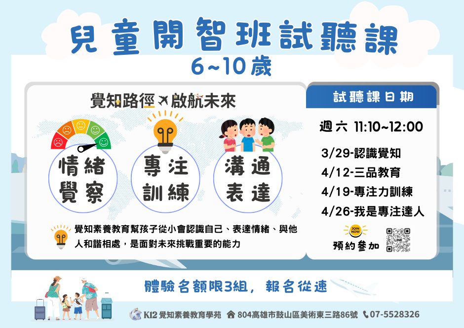 國小開智班|試聽日:4/12、4/19、4/26 (週六)|時間: 11:10-12:00