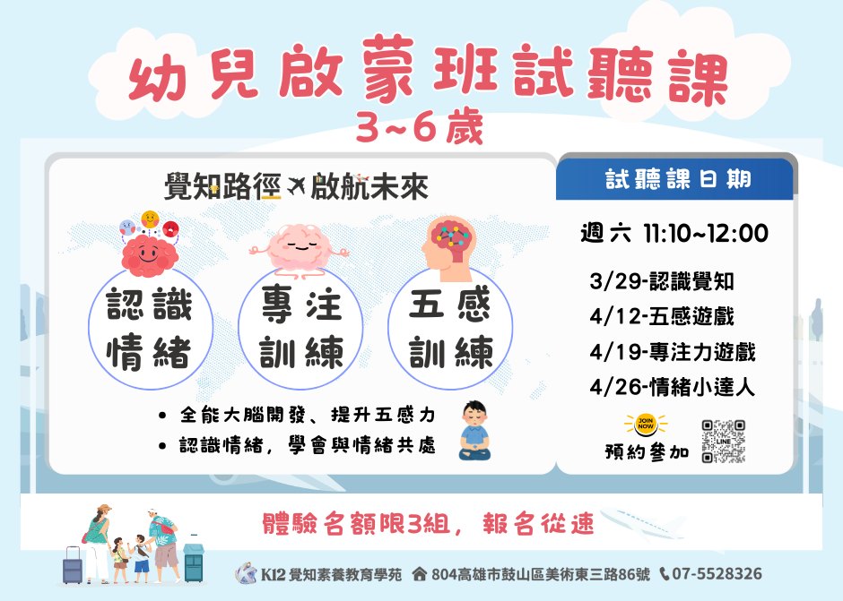 幼兒啟蒙班|試聽日:4/12、4/19、4/26 (週六)|時間: 11:10-12:00