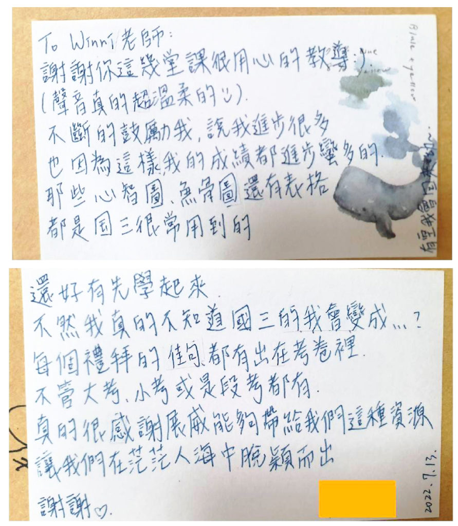 學生暖心回饋,謝謝離班同學留下的溫暖紙條,老師收到了!